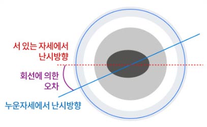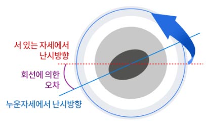 누워있는 자세의 난시 방향으로 렌티큘 생성